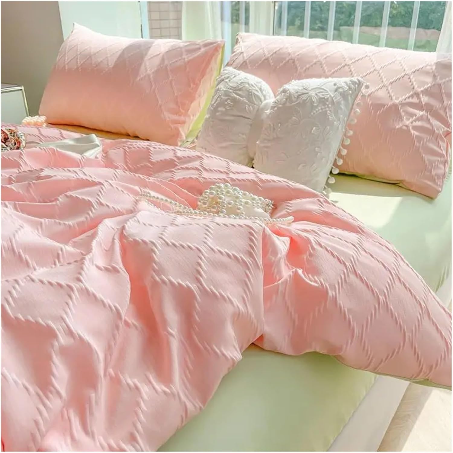 DescriptionProduct InformationMaterial: Washed CottonSize:Twin 120cm bed 3pcsSuitabel Compatible with 4.0/4.5 Feet bed:1 piece Duvet Cover: 150X200cm(59X78inches)1 piece Bed sheet: 160X230cm(62X90inches)1 pieces Pillowcases: 48X74cm(19X30inches)Full 150cm bed 4pcsSuitable Compatible with 4.5/5.0 Feet bed:1 piece Duvet Cover: 150X200cm(59X78inches)1 piece Bed sheet: 200X230cm(78X90inches)2 pieces Pillowcases: 48X74cm(19X30inches)Queen 180cm bed 4pcsSuitable Compatible with 5.0/6.0 Feet bed:1 piece Duvet Cover: 180X220cm(70X86inches)1 piece Bed sheet: 230X230cm(78X78inches)2 pieces Pillowcases: 48X74cm(19X30inches)King 200cm bed 4pcsSuitable Compatible with 5.0/6.0 Feet bed:1 piece Duvet Cover: 200X230cm(78X90inches)1 piece Bed sheet: 230X230cm(78X78inches)2 pieces Pillowcases: 48X74cm(19X30inches)Note:1.Manual measurement 1-3cm error is allowable.2.different country size is different ,please check it before you buy.3.due to the long distance transportation problem ,the product will bea little fold,the product not so flat as picture,but does not affect the use.4.This is duvet cover set do not include any filling or pillow fillin.