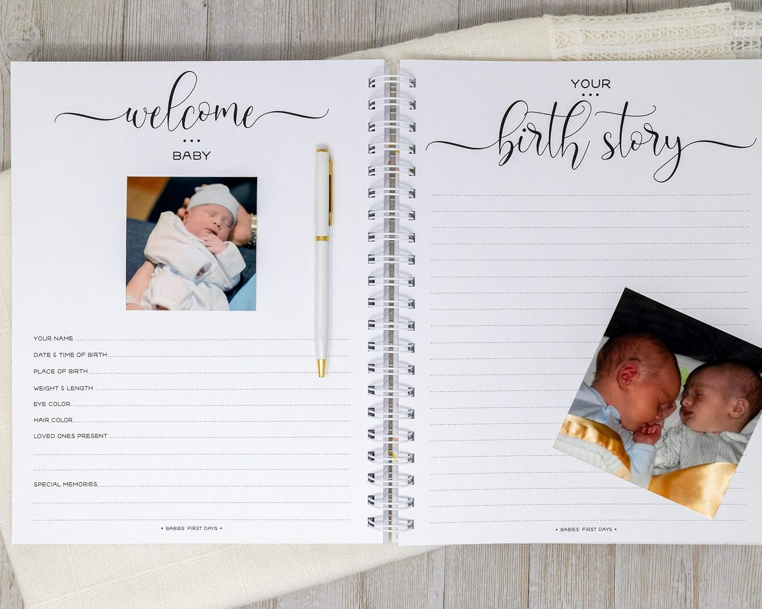 Capture all the memories from bump to babies in this personalized, hardcover twin pregnancy journal from Charmbooks. You can customize the front cover with names, date, or your own text. Each memory book has 66 heavyweight pages designed with a classic, minimalist look, and includes thoughtful prompts and spots for photos so you don’t forget a thing.