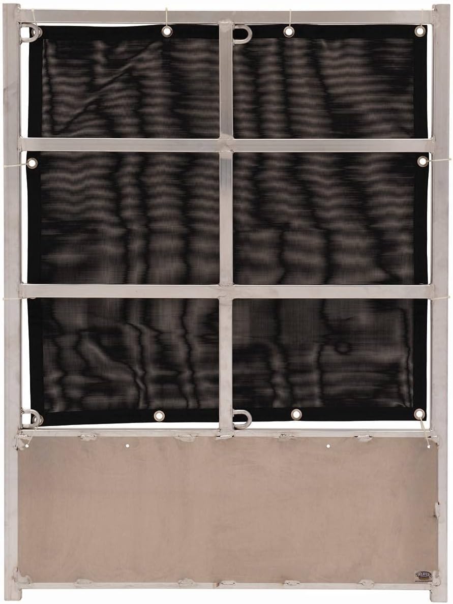 Features: Alleviate stress on your animal with this tarp designed to block out stall Fine mesh material allows airflow but has minimal see-through to keep cattle calm In sizes to fit 4' or 8' Front Tie Panels Size: 44'' x 44''